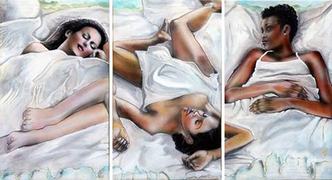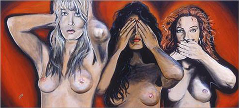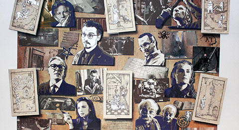 | Titel: Dream Triptychon (use your mind to find the hidden message). Originale noch erhältlich: Dream 3, Triptychon, 51 x 83 cm, Drucke in jeder gewünschten Größe möglich. | Titel: Die Neun Pforten (Ausschnitt). Die Inspirationsquelle war der gleichnamige Film von R. Polanski. Das drei-dimensionale Kunstwerk zeigt Filmszenen und Holzschnitte. | |||||||