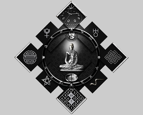 | Gemälde: Hauptgang, Mahlzeitserie, brown girl on a silver plate - Original verkauft/Sammlung, Drucke in jeder gewünschten Größe möglich. | Gemälde: Meditative Ausrichtung in Zeit und Raum 155 cm x 155 cm - diagonal - 9 teilig Das Kunstwerk befindet sich im Besitz des Künstlers. |
